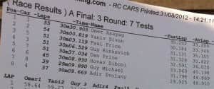 תוצאות מירוץ מספר 1 אליפות ישראל 2012 גלילות
