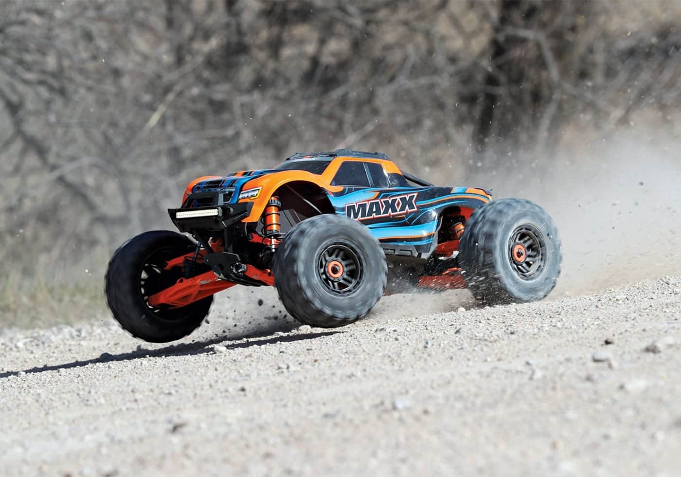 קיט הרחבת מתלים משופר כתום קדמי/אחורי לרכב מאקסס תוצרת טרקסס, מייצב את הרכב במהירויות גבוהות ומאפשר הרכבה של צמיגים גדולים ורחבים יותר ( כגון פרוליין באד לאנדס 3.8 RAID )
