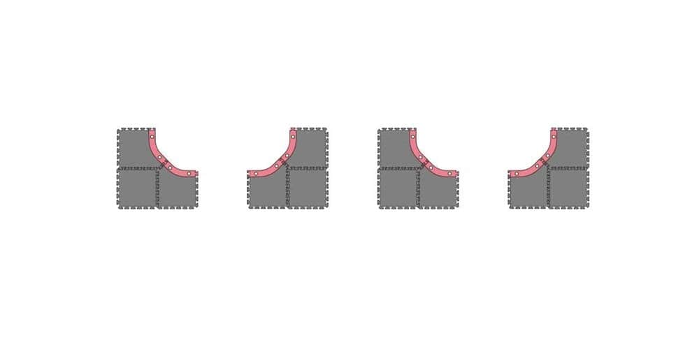 סט ארבע פניות מיוחדות למסלול קיושו מיני-זי גראנד פריקס. הפניות המיוחדות מאפשרות לרכבים נוע במהירות בפניה.