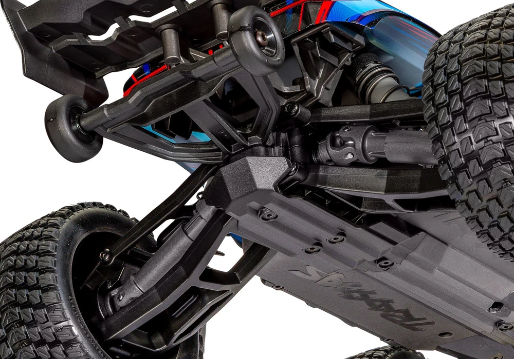 טרקסס מיני XRT מוכנה לנסיעה - בראשלס 4X4 בגודל 1/16 בצבע כחול.