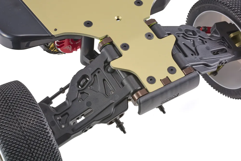 ●תומכי בולם הזעזועים הקדמיים והאחוריים עשויים מדוראלומין 7075 קשיח במיוחד. תומך בולם הזעזועים האחורי הוא בעל עיצוב קל משקל. החלק הקדמי בעובי 5 מ"מ והאחורי בעובי 4 מ"מ. כמו כן, ברגי הרכב התומך שונו מ-4 מ"מ ל-3 מ"מ.