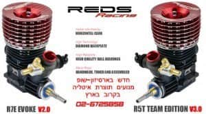 קומבו מנוע REDS R5T TEAM EDITION V3.0 ( הדגם החדש ראש אדום עם הסיכה הצדדית ) + מערכת אגזוז REDS 2104 ב- 1800 ש”ח למזמינים מראש ( 1900 ש”ח שיגיע למלאי )