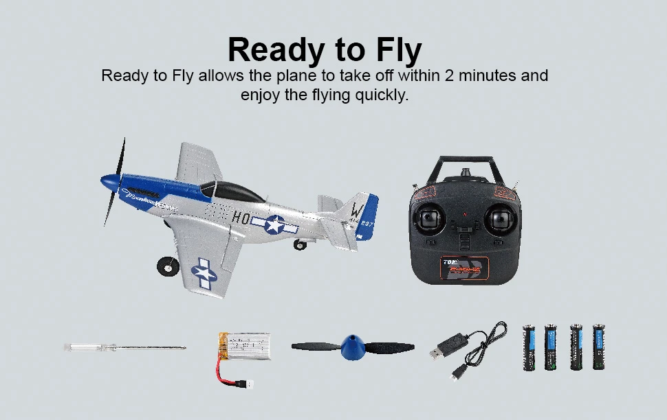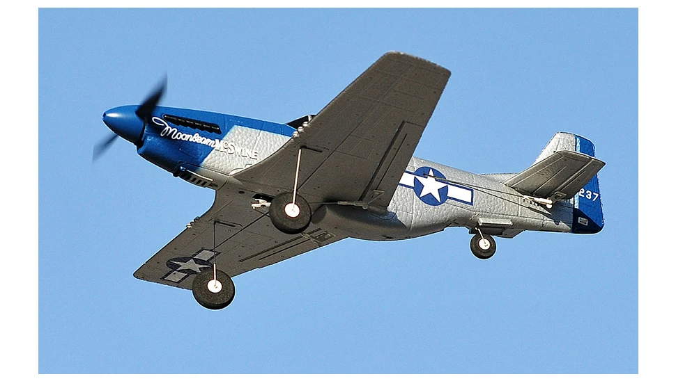 מוסטנג P51 טיסן חשמלי ארבעה ערוצים מוכן להטסה בעל מוטות כנפיים 45 ס"מ כולל שתי סוללות ומטען, המוסטנג P51 הוא אחת מעופות המלחמה המפורסמים ביותר מארצות הברית, זה נקרא "מלך הלוחם". ארה"ב ייצרה 15875 יח 'במהלך מלחמת העולם השנייה.