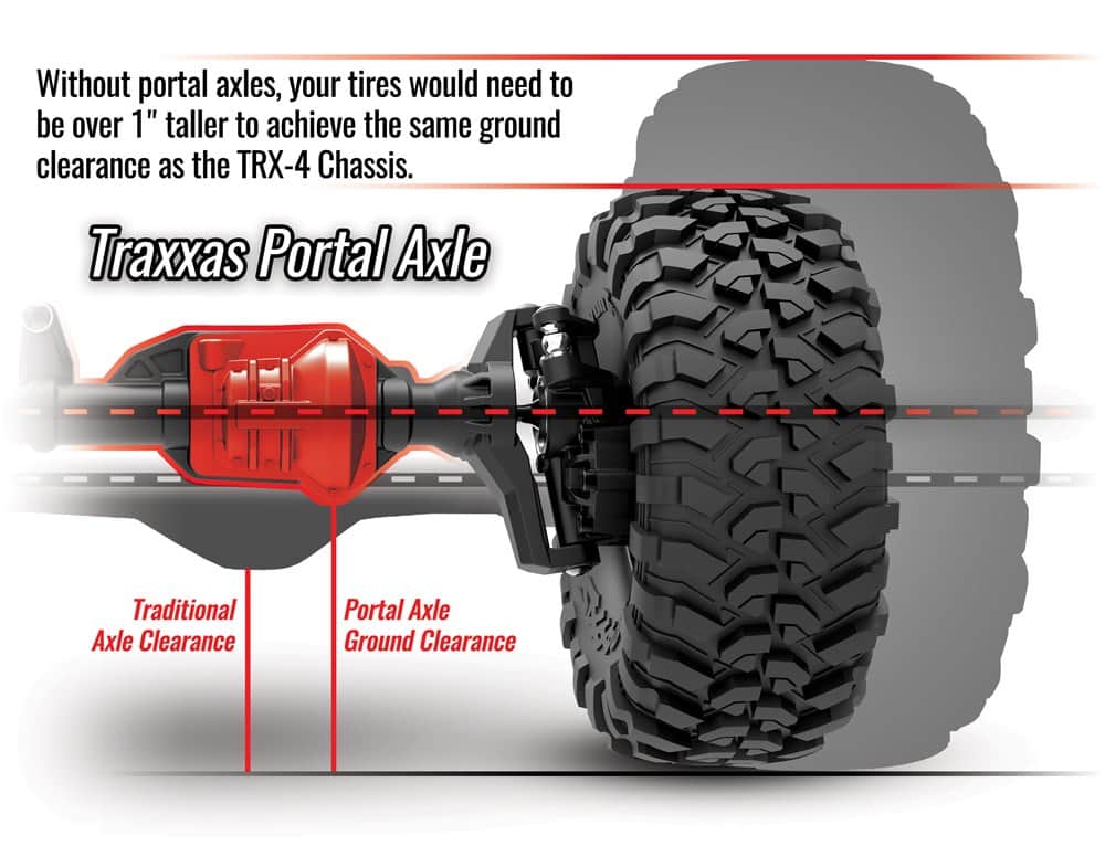 מתחת למראה בקנה מידה אותנטי נמצאת מכונה הבנויה ליכולת קיצונית בשטח המובילה אותך למקומות חדשים והרפתקאות חדשות. סרני פורטל בלעדיים מספקים מרווח גחון מקסימלי שהופך את ה- TRX-4 לרכב שלא ניתן לעצירה בתנאי שטח הקשים ביותר.
