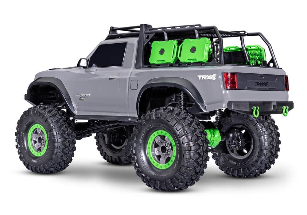 רכב טרקסס TRX-4 דגם הספורט החדש , הגרסה המוגבהת עם צמיגים גדולים יותר במראה מהמם בצבע אפור/ירוק. ה-TRX-4 ספורט High Trail הוא זחלן מהפכני 4X4 המוביל בעולם בעל חזות מרשימה המסוגל לעבור בתנאי השטח מאתגרים להנעה מרובה.