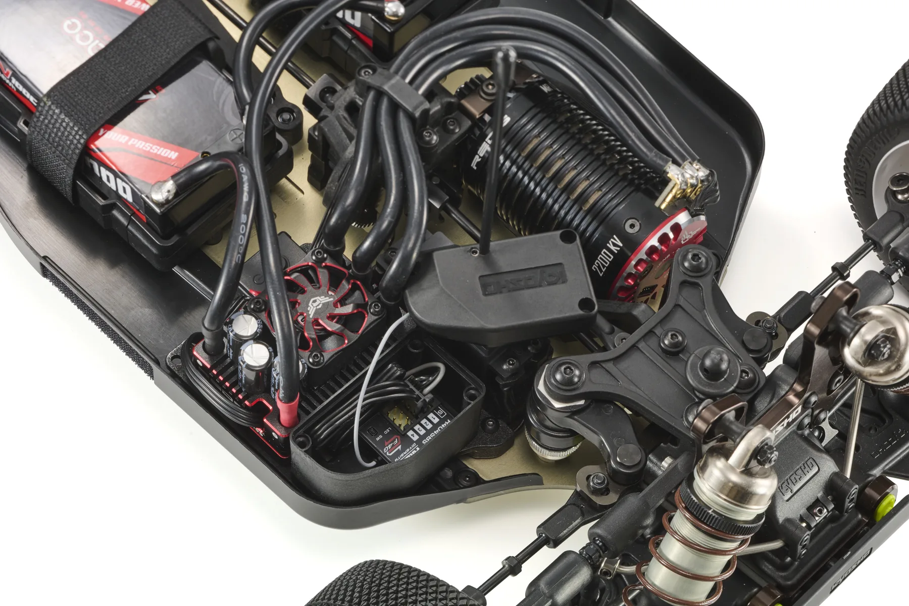 המקלט שוכן בקופסה אטומה ועמידה בפני אבק עם מכסה מהודק להגנה, בעוד שה-ESC מותקן על לוח רדיו נפרד עם מיקום מתכוונן קדימה-אחורה לכוונון איזון משקל.